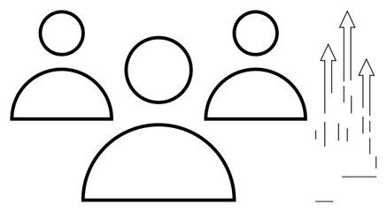 Simplistic outline of three human figures and upward arrows symbolizing teamwork, progress, and collective growth. Ideal for business, leadership, motivation, community, career development, success
