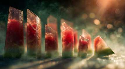 The scene features a collection of fractal shards that rise in varying heights, collectively forming a hazy line of mist close to the lens. In the distance, there’s an intentionally unfocused backgrou