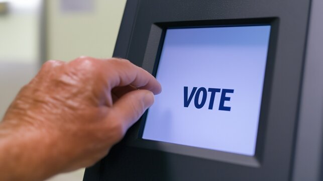 A voter actively engaging with a touchscreen voting machine during the elections, ensuring their voice is heard