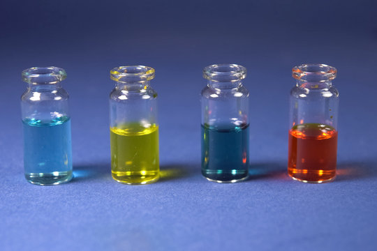 Chemical experiments, chromiumbased solutions. liquid in the flask.
