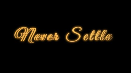 Motivational glowing orange script text never settle message against a dark background inspiring ambition