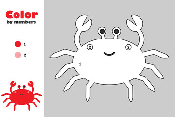 Crab in cartoon style, color by number, education paper game for the development of children, coloring page, kids preschool activity, printable worksheet, vector illustration