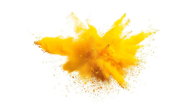 Yellow lemon gold color powder dust explosion PNG transparent background isolated graphic resource. Celebration, colorful festival, run or party element