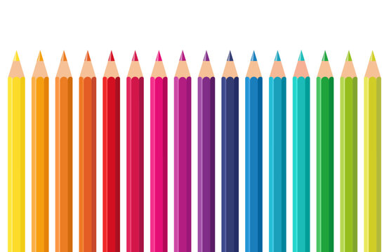 Color pencils isolated on white background close up with Clipping path.Beautiful color pencils.Color pencils for drawing  Rainbow color pencil and used as a background.