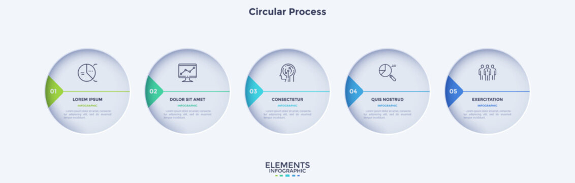 Informative circular process infographic chart for business startup demonstration. Circular infochart with thin line icons. Instructional graphics with 5 steps sequence design for web pages