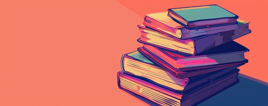 Stack of colorful books against a vibrant background, illustration. Education and knowledge concept
