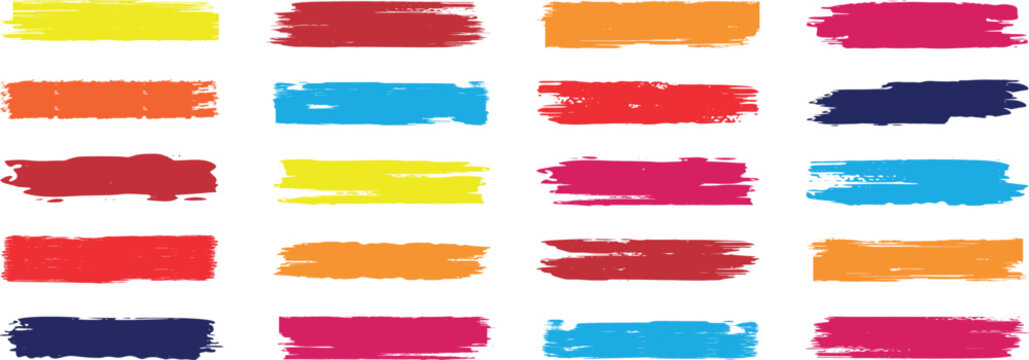 Colorful paint strokes. Set of colorful brush strokes, lines, Brush stain. Rectangle brush collection. Grungy brushes collection. Vector black paint brush. permanent marker pen stroke set.