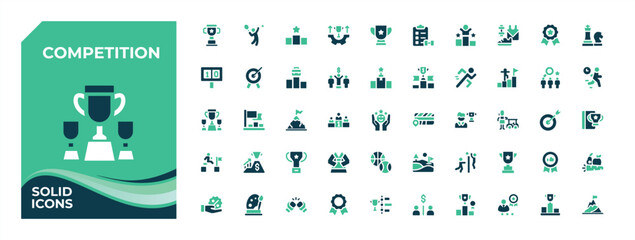 Competition colorful solid icon pack. Contain filled symbols rival, champ, sprint, sport, competitive, fight and more. Minimalist icons collection. Fight icon set. Pixel perfect. Editable vector.