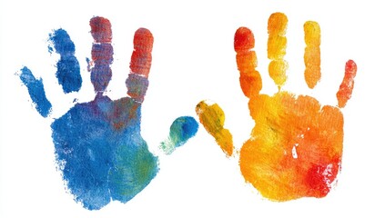 A vibrant collage of colorful handprints on a textured background, representing unity and artistic expression.