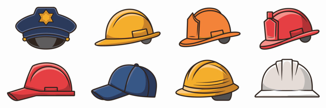 Winter hats vector collection, colorful knitted beanies, warm wool caps, cartoon illustration of cozy headwear, pom pom hats, seasonal fashion accessories design