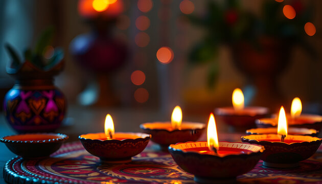 Vibrant diwali greeting with decorative oil lamps and festive text