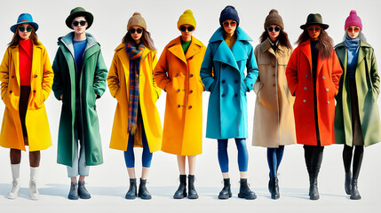 A colorful collection of women's slim-fit pants in various shades. Vector illustration set of stylish trousers for fashion design