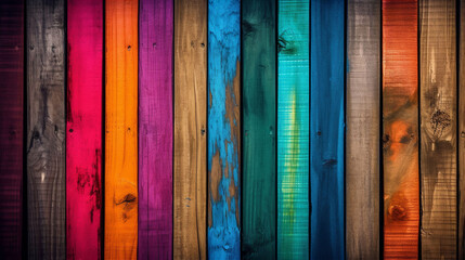 An abstract colorful multicolour wood plank texture background. A.I. generated.
