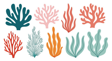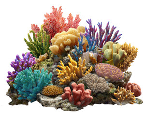 Detailed illustration of colorful coral reef structures and formations isolated on transparent background