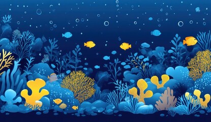 Colorful Watercolor Ocean Scene with Fish and Coral Reef Illustration