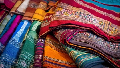 Traditional dupatta fabric folded neatly showcasing colorful ethnic textile and cultural fashion