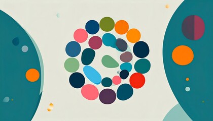 A digital rendering of a side profile of a woman's face with geometric lines and dots that form a grid pattern, set against a backdrop of colorful circles and dots.