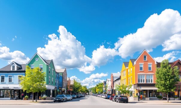 A vibrant rainbow-colored fence surrounds a playful outdoor playground, set beneath leafy trees and beside a city building.
