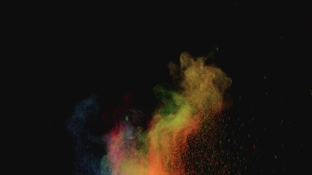 Multicolor powder explosion on White background. Colored cloud. Colorful dust explode. Paint Holi. colorful rainbow Holi paint color powder explosion with bright colors isolated white background.