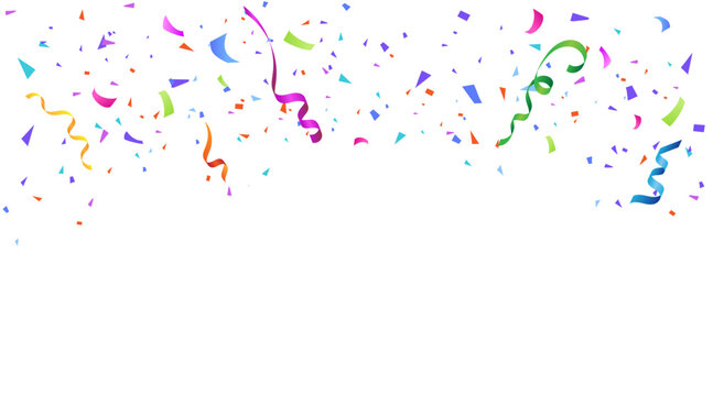 Vector abstract background with many falling tiny colorful confetti pieces and ribbon. Carnival, Christmas or New Year decoration colorful party pennants for birthday , festival