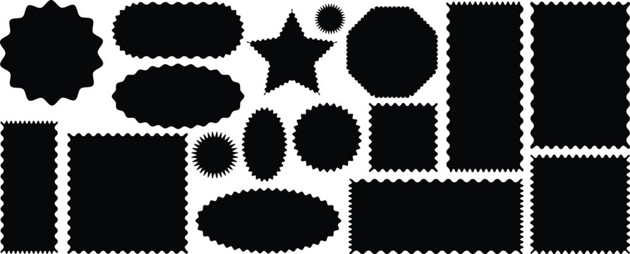 Postage stamp borders set vector. Colorful zigzag wavy edge frames. Wavy edge frame or shapes. Set of frames in shape of squares and rectangle of various sizes with zigzag edges.