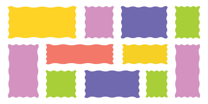 Squiggle frame vector, colorful wavy, zigzag borders, playful design, blank shapes, decorative graphic, white background, creative digital art, abstract template, unique patterns, dynamic layout