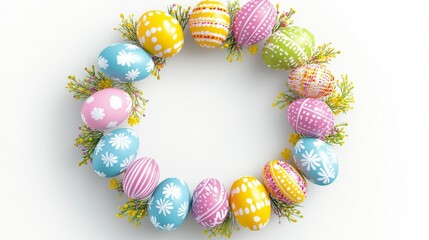 Easter Egg Wreath: A vibrant Easter egg wreath, crafted from colorfully decorated eggs and spring greenery, creates a cheerful and festive circular frame.