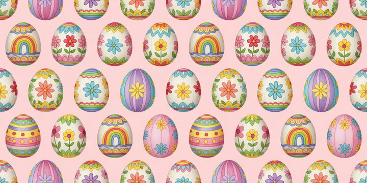 Colorful easter greeting with patterned eggs background