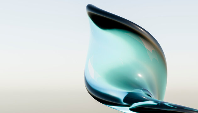 Black dark abstract background. Iridescent fluid glass wave. Prism shape 3D render. Smooth curved transition. Rainbow light reflection. Bright glow shimmer. Neon metallic futuristic blur texture
