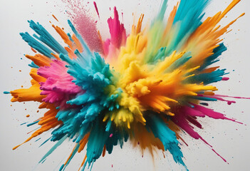 colorful powder explosion, pink blue yellow and orange very bright colours burst