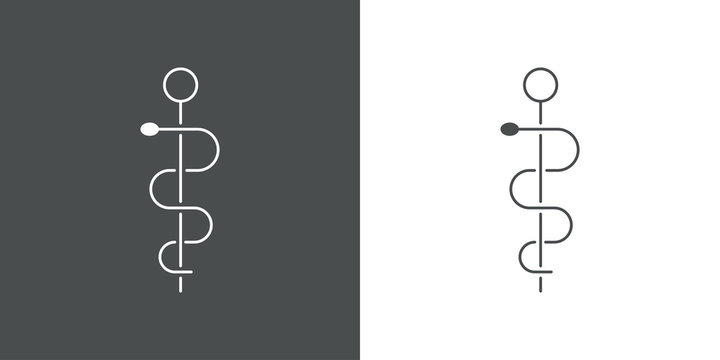 Símbolo lineal asistencia sanitaria con caduceo en fondo gris y fondo blanco