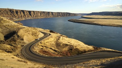 Washington Nature. Panoramic View of Columbia River Crest in Blue Sky