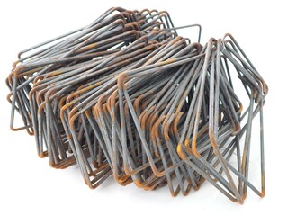 Bundle of steel rebar stirrups for column and beam reinforcement