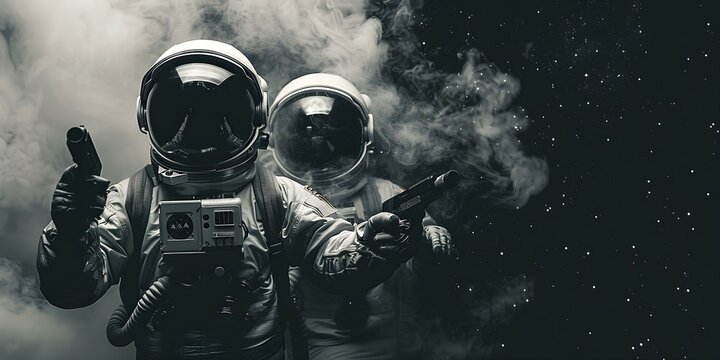 Astronauts in combat gear conducting zer. Concept Space Exploration, Protective Gear, Zero Gravity Combat