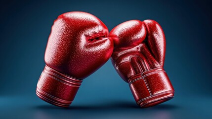 Two red boxing gloves touch, suggesting a competitive or combative theme against a blue background, close-up.