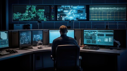Image features double exposure of worker silhouette combined with industrial landscape, showcasing factories and gears against dramatic sunset. This artistic representation symbolizes connection