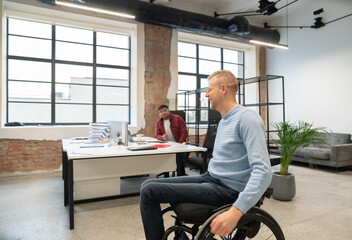 Man On Wheelchair At Office