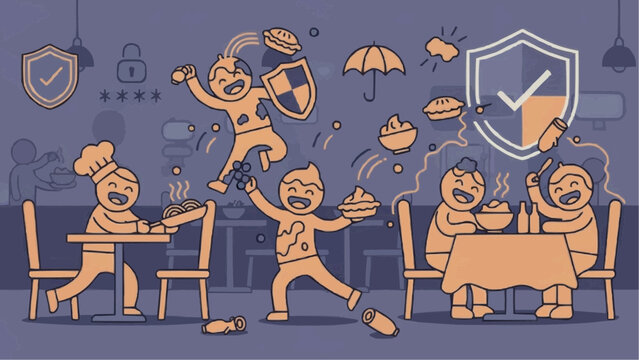 animals of the horoscope Cartoon Food Fight Chaos in Restaurant with Flying Dishes and Playful Characters