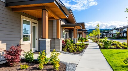 Senior care facility exterior with well-maintained garden and welcoming entrance. Emphasizing comfort and dignity in elderly living environments.
