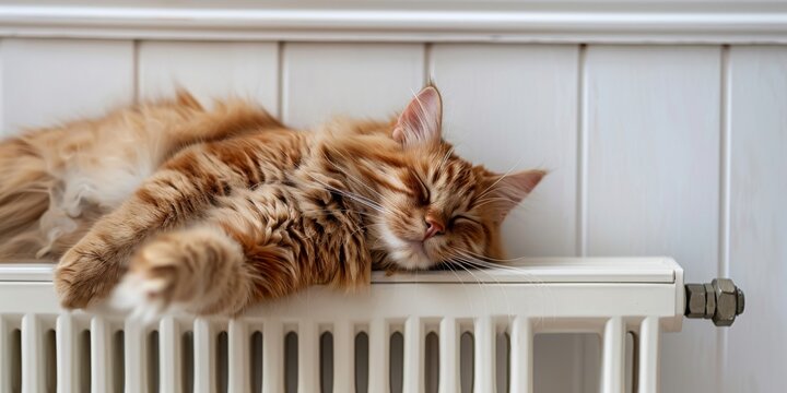 Sleeping orange tabby cat with contentment. A pet cat that is comfortable and relaxed indoors.