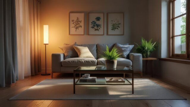 Cozy home setting with multiple devices connected to a central smart home system, illustrating modern interconnected living