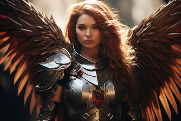 Digital generative ai collage of powerful lady in angel costume for fan festival