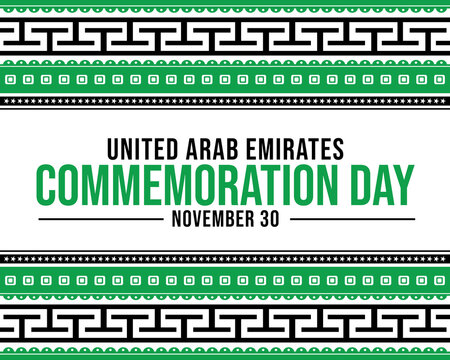 United arab emirates commemoration day graphic with green and black decorative borders design