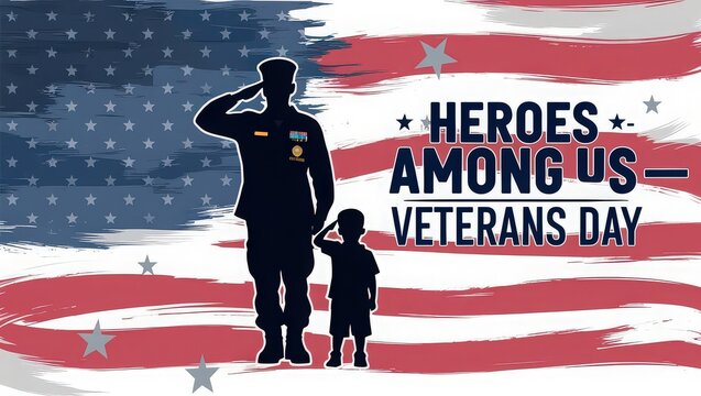 Patriotic veterans day tribute featuring american flag and soldiers