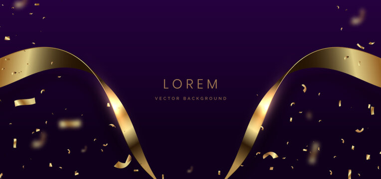 Gold ribbon on dark purple background. Celebration grand openning party happy concept.
