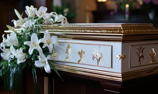 Lily motifs enhance the elegance of a funeral program. AI generated illustration.