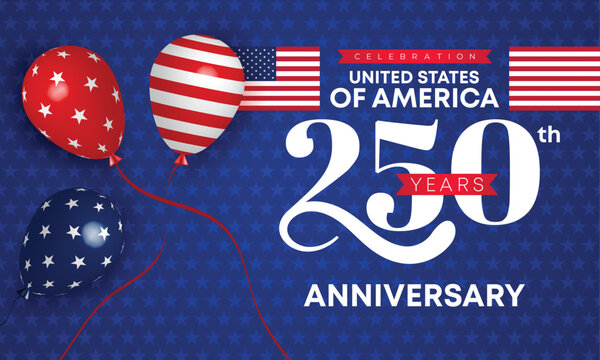 USA Patriotic 250 Bold Shape Anniversary Banner. American Geometric Stars Background