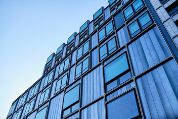 The external units of the commercial air conditioning and ventilation systems are installed on the roof of an industrial building. Winter photo.
