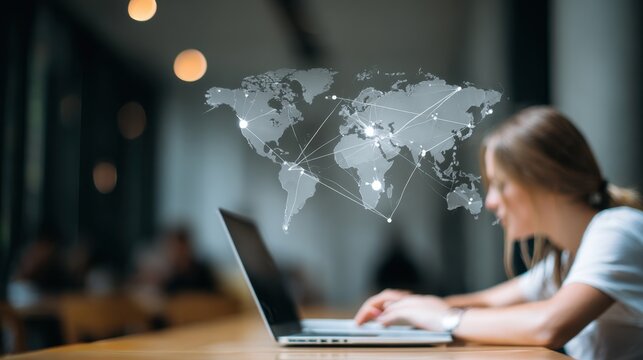 Focused businesswoman engaging in work week learning on laptop