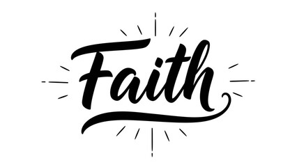 Inspirational Handwritten Word Faith with Radiant Sunburst Design